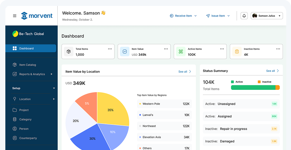 Morvent delivers comprehensive visibility into both IT and physical assets with detailed logs, audit trails, and real-time updates on asset status and usage.